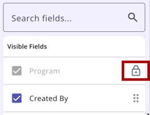 Fields in the Visible Fields section with a lock icon cannot be moved or removed.